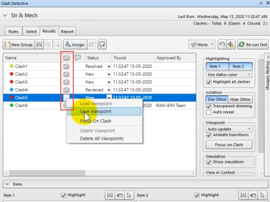 ۳ – برای هر تداخل Save Viewpoint را انجام دهید.