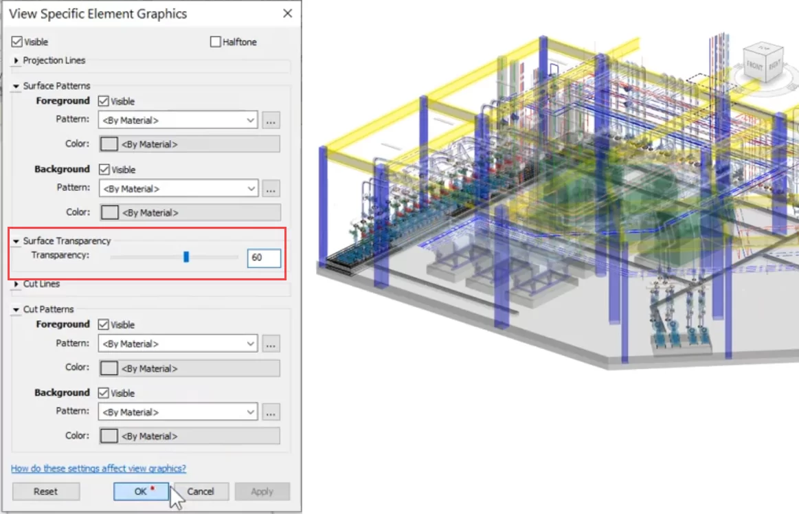 ۶ – مدل موجود در رویت را به مقدار مثلا ۶۰ درصد شفاف کنید.