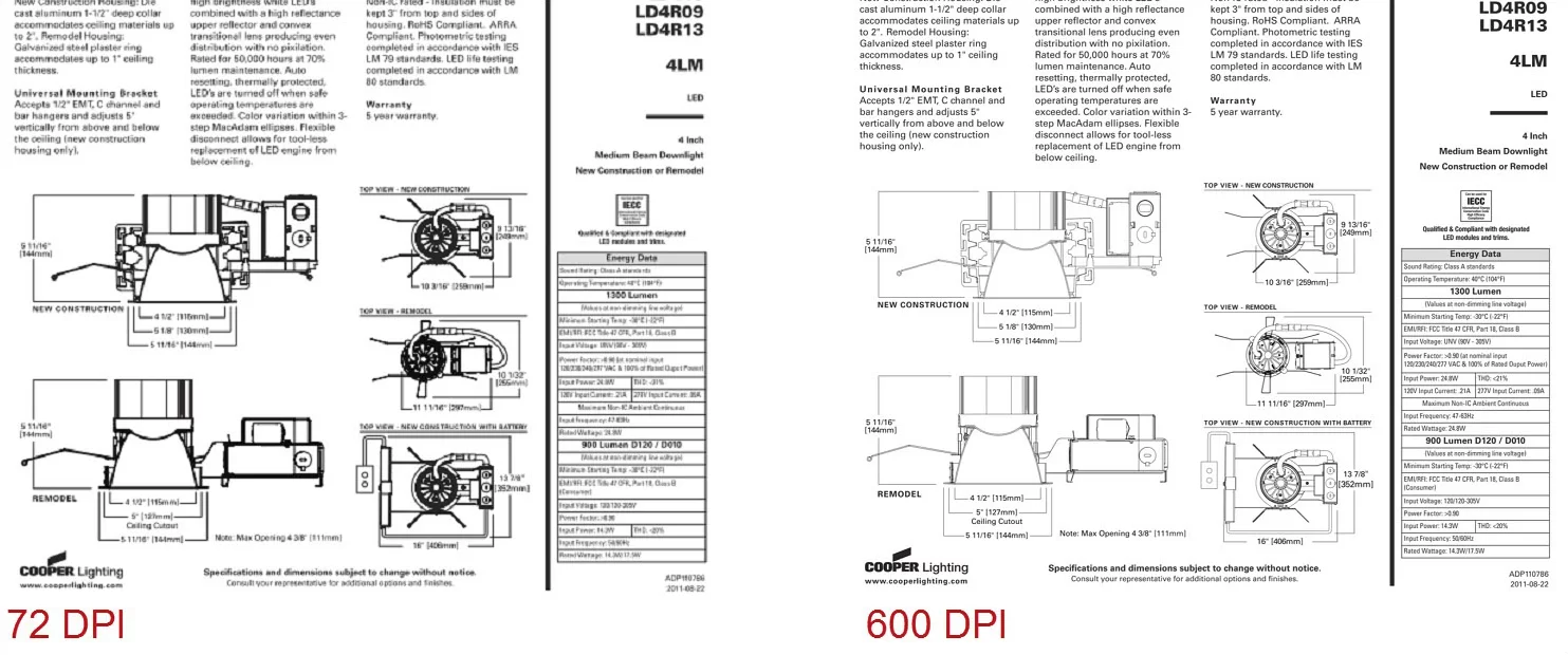 در تصویر زیر می توانید تفاوت بین ۷۲ DPI و ۶۰۰ DPI را مشاهده کنید.