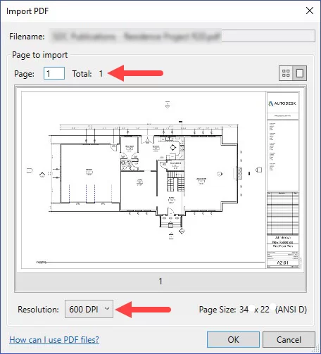 در طول فرآیند وارد کردن فایل PDF در رویت، پنجره ای با نام Import PDF باز می شود که به کاربران این امکان را می دهد تا صفحه مورد نظر از یک فایل PDF و یا مقدار وضوح و کیفیت را تنظیم کنند.