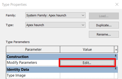 در کادر Type Properties ، می توانید دکمه modify parameters را پیدا کنید.