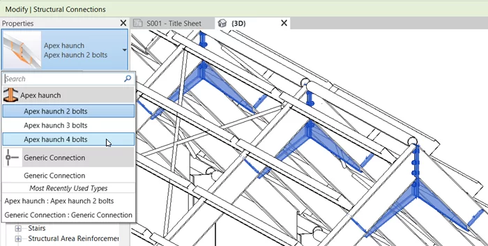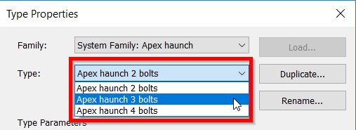 از آنجا که اکنون یک پارامتر type است ، می توانید انواع مختلفی را برای اتصال فولادی خاص تعریف کنید.
