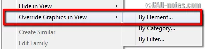 با فعال بودن نمای elevation، کلیک راست زده و override graphics in view> by element را انتخاب کنید.