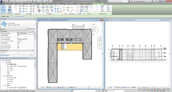 پس از انتخاب آبجکت ها، روی هر نقطه از نمای elevation کلیک کنید تا نما فعال شود.