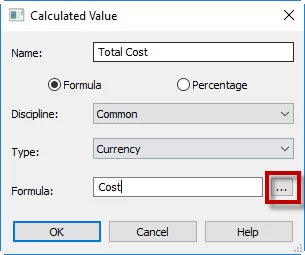 این پارامتر را نامگذاری کنید: Total Cost ، نوع پارامتر را به ارز تغییر دهید و فرمول را با هزینه پر کنید. فرمول به حروف کوچک و بزرگ حساس است. برای جلوگیری از اشتباه ، می توانید بر روی دکمه کنار قسمت فرمول کلیک کرده و آن را از لیست انتخاب کنید.