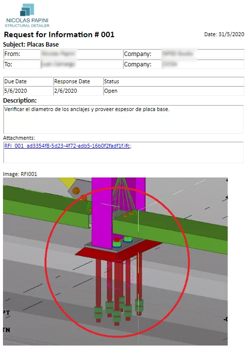 برای اینکه بررسی کننده RFI به طور کامل و سریع پاسخ دهد ، RFI باید تمام اسناد مربوطه را داشته باشد. این اسناد می تواند شامل نقشه، مشخصات ، کاتالوگ مصالح، تصاویر و یا فیلم هایی از شرایط فعلی سایت باشد.
