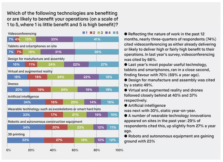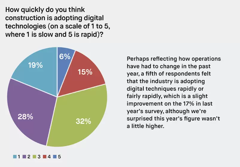 کار از راه دور به پذیرش بیشتر فناوری های دیجیتالی منجر شده است ؛ اما نه آنطور که انتظار می رفت ، همانطور که نظرسنجی سالانه CM و BIMplus نشان می دهد.