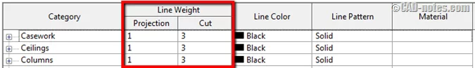 ما می توانیم وزن خط (Line Weight) را در Revit تغییر دهیم و آن را در Object Styles تغییر دهیم. همانطور که در تصویر زیر مشاهده می کنید ، این اعداد شامل اعداد صحیح (بدون اعشار) هستند.