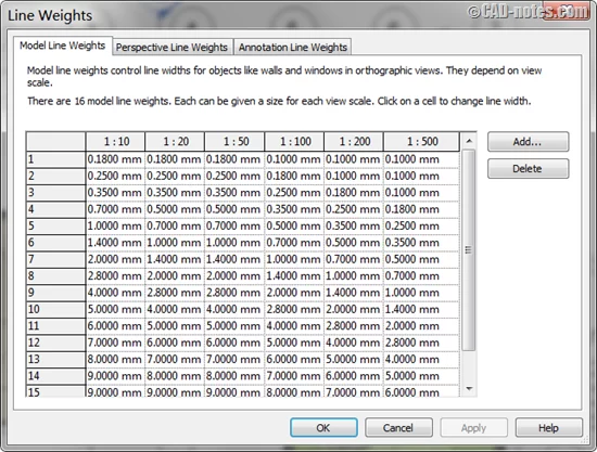 اگر مقیاس نما ۱: ۱۰۰ تنظیم شود ، Weight آن نمای خاص ۰٫۲۵ میلی متر است.اگر نما روی مقیاس ۱: ۵۰۰ تنظیم شود ، Weight خط ۰٫۱ میلی متر خواهد بود.