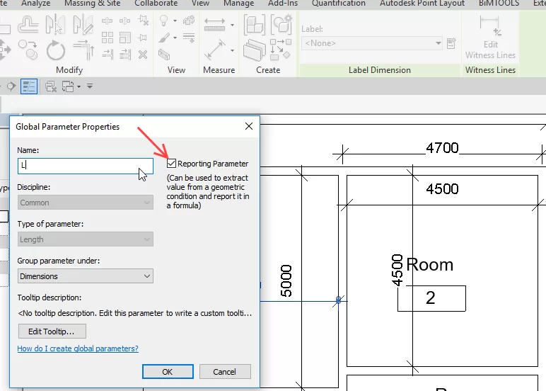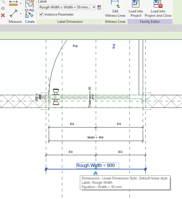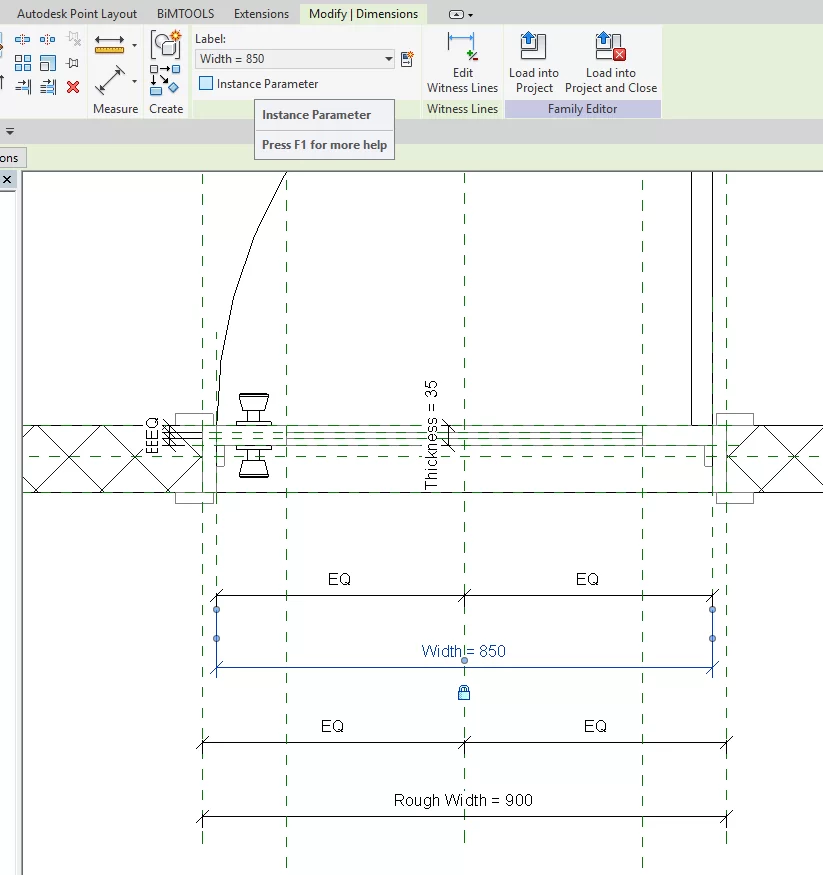 2-سپس از زبانه Modify | Dimension > پنل Label Dimension گزینه Instance Parameter را فعال کنید.