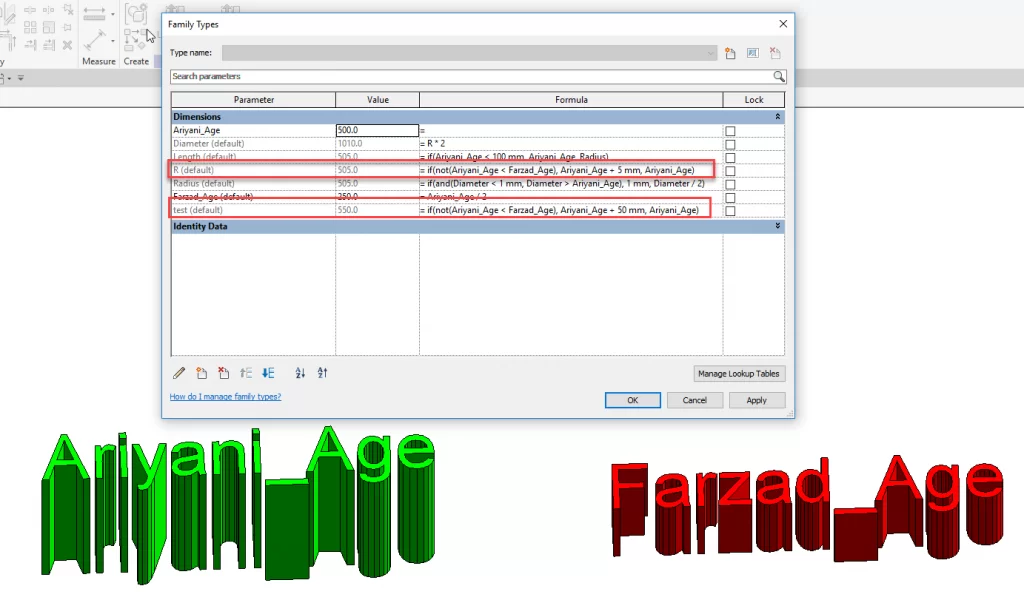 نرم افزار Revit علاوه بر Syntax های فوق، از عبارت های شرطی نیز پشتیبانی می کند. شما با عبارات شرطی که نرم افزار Revit پشتیبانی می کند، بسته به اقدامات مورد نیاز خود در فیلد Formula در محیط فمیلی، متره یا Global استفاده کنید. عبارات شرطی در شرایط خاص بسیار می تواند مفید باشد. از آنجایی که استفاده از عبارات شرطی، فمیلی ها یا آن پارامتر پیچیده تر می شود، فقط در صورت لزوم از آن استفاده می شود. در حقیقت فرمول ها برای به حداکثر رساندن قدرت پارامتری در Revit می باشد، به شرط آنکه آن را خوب بیاموزید و از آن به شکل درست استفاده کنید، و اینکه با فرمول نویسی داخل رویت شما محدودیت های رویت را تا حد امکان کاهش می دهید و به امکانات بی حد و حصر آن دست پیدا خواهید کرد.