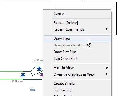 اتصالات Y را انتخاب کنید. بالای کانکتور کلیک راست کرده و از منوی زمینه Draw Pipe را انتخاب کنید.