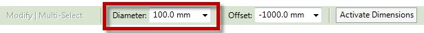 در نوار گزینه ها ، قطر را به ۸۰ میلی متر تغییر دهید.