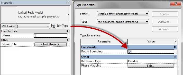 گزینه Room Bounding را در Type Properties تیک بزنید. برای بستن کادر ، ok را کلیک کنید.