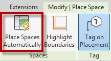 مراحل زیر را می توانید بصورت دستی قرار دهید. اما اگر می خواهید همه فضاها را به طور خودکار قرار دهید ، می توانید از Place Spaces Automatically استفاده کنید. فضاهایی را برای همه اتاق ها ایجاد می کند که با مرزهای دیوار بسته می شوند.