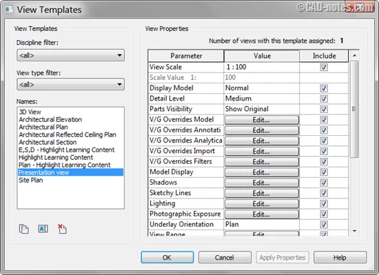 برای اعمال تمپلیت، روی Apply Template Properties to Current View کلیک کنید.