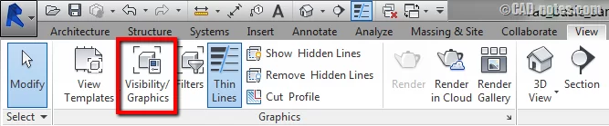 از Revit ribbon> View tab> Visibility Graphics می توانید به Visibility Graphic دسترسی پیدا کنید.