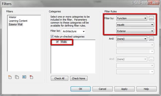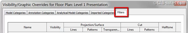 می توانید از پنجره Visibility / Graphics Override> Filters به فیلترها دسترسی پیدا کنید.