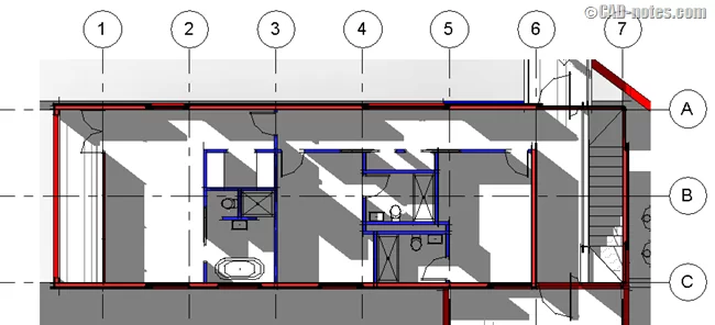 این نمونه ای از نحوه تنظیم رنگ های مختلف برای دیوارها است. دیوارهای قرمز دیوارهای خارجی هستند و دیوارهای آبی دیوارهای داخلی هستند.