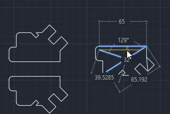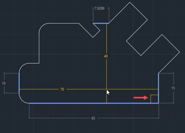 هنگامی که این گزینه فعال باشد، ابعاد و فاصله ها و زوایای موضوعات را در یک ترسیم با حرکت موس بین موضوعات به صورت پویا و هوشمند نمایش می دهد. در بخش هایی که زاویه دقیق ۹۰ درجه باشد با یک مربع نارنجی رنگ نمایش می دهد و بقیه قیمت ها را با اندازه دقیق می توانید مشاهده کنید. مانند تصویر زیر.