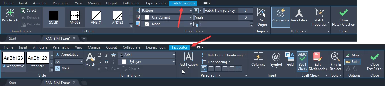 اکنون زبانه هایی که در حال ویرایش یا ایجاد فرآیندی هستید به صورت برجسته تر ظاهر می شود تا از فعال بودن آن بهتر اطمینان حاصل کنید. مانند زمانی که از ابزار Hatch یا Edit Text استفاده می کنید.