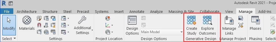 این ابزار از زبانه Manage > پانل Generative Design قابل دسترسی می باشد: