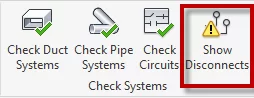در Revit Ribbon> برگه Analyze> برگه Check Systems ، روی Show Disconnects کلیک کنید.