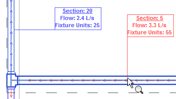 ماوس را بر روی یک لوله حرکت دهید. می توانید پیکان جریان و حجم را در نشانگر مشاهده می کنید. برای مقایسه مقدار آن با لوله دیگر می توانید یک برچسب موقت قرار دهید.