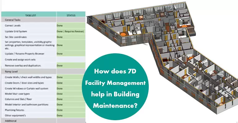 مدیریت تعمیر و نگهداشت ۷D یکی از فرایند های استفاده از مدل BIM برای مدیریت ساخت است. در اینجا ، همه پارامترهای مرتبط با اجزای مختلف ساختمان در مدلهای هندسی سه بعدی ادغام شده اند. این کار به مدیران تعمیر و نگهداشت کمک می کند تا به هدف خود در ساخت کارآمد و راحت برسند. این روش همچنین مقرون به صرفه تر از روش های سنتی است.