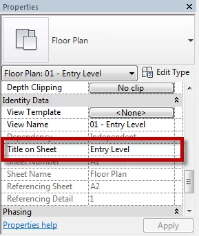 آیا عنوان sheet نیز دارای پیشوند است؟ بله ، اما می توانید عنوان Title on Sheet را تغییر دهید . اگر این قسمت را پر نکنید ، Revit از نام نمایش استفاده می کند. پیشوند در صفحه شما خوب به نظر نمی رسد ، اما نگران نباشید. می توانید فقط نام view را در صفحه نشان دهید.