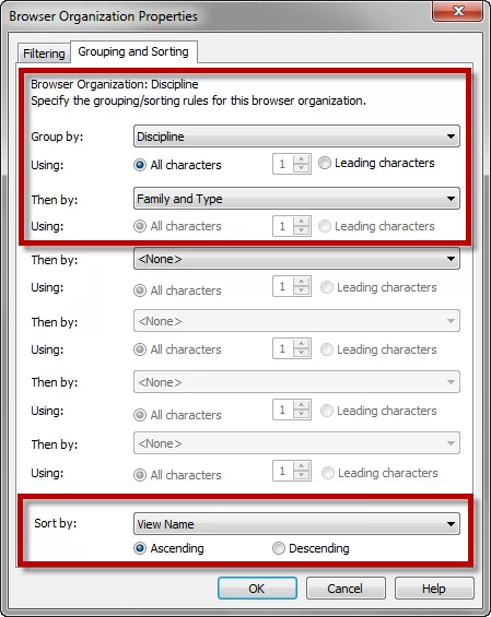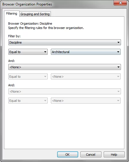 در Properties Organization Browser ، اولین برگه Filter است. این گزینه لیست موجود در Project Browser را ساده و از سردرگمی جلوگیری می کند.