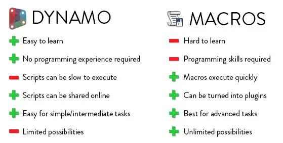 مرحله اول:می توانید از برنامه Dynamo استفاده کنید. داینامو یک زبان برنامه نویسی به صورت ویژوال می باشد که کاربران می توانند بدون داشتن دانش برنامه نویسی، شروع به ایجاد اسکریپت های خود کنند. این گام برای شروع بسیار مفید و عالی می باشد. بین Node و Code تفاوت هایی وجود دارد که در تصویر زیر می توانید مشاهده کنید.