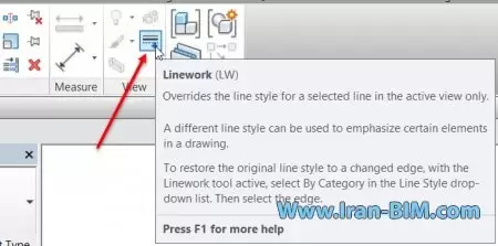 2- از زبانه Modify > پانل View > ابزار Linework را انتخاب کنید.