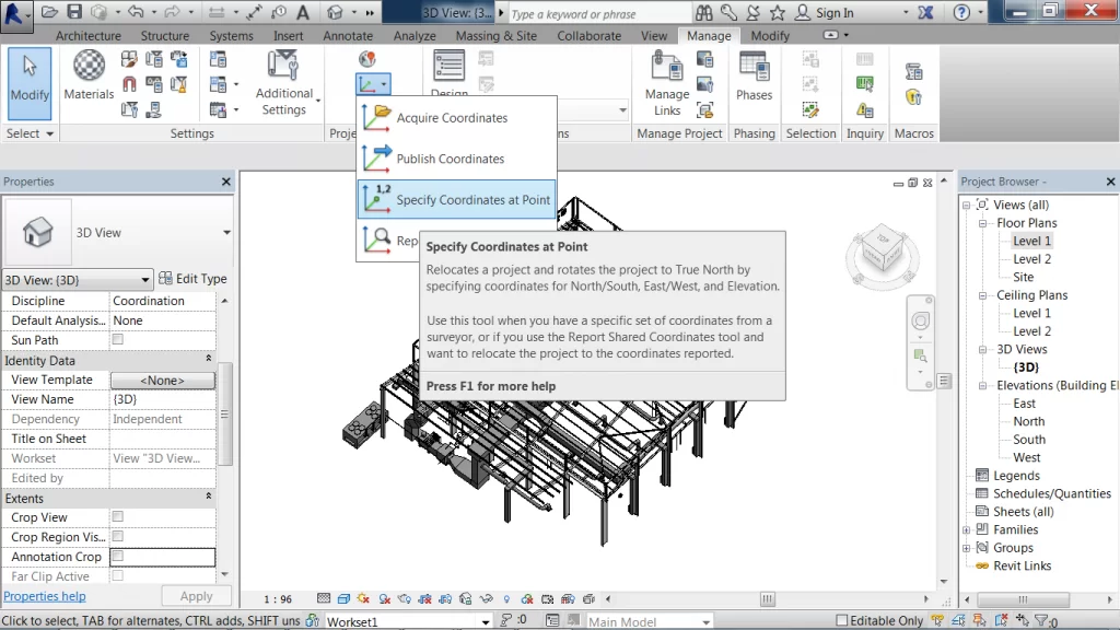 - سازوکار Revit به گونه ای است که در مورد کل عناصر یک مدل ، برای هر پروژه یک سیستم مختصات داخلی وجود دارد. سیستم مختصات یک پروژه فقط برای آن پروژه آشناست.