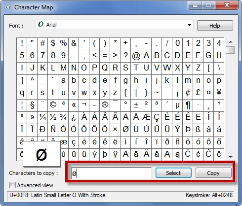 در نتیجه باید از یک ابزار خارجی Windows استفاده کنید: Character Map.