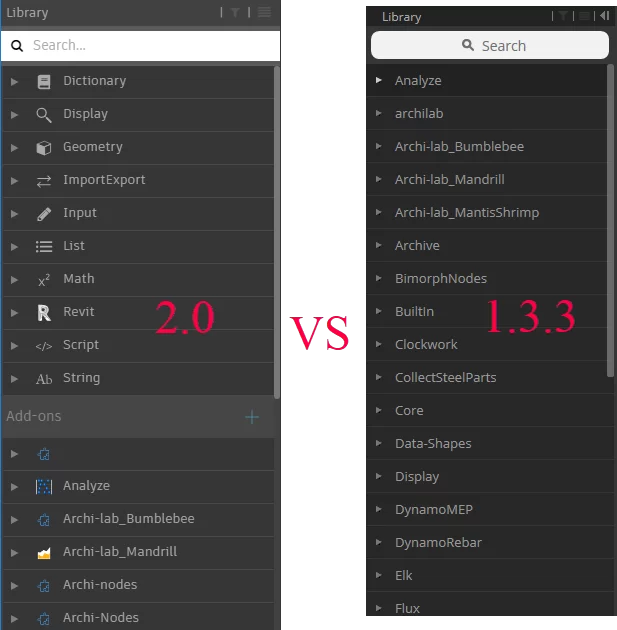* تمامی گره های خارج از پیش فرض (custom nodes, packages, dlls)، در یک بخش جداگانه ای با نام Add-ons اضافه و نمایش داده می شوند.