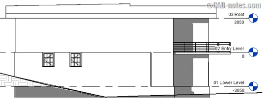 دلیل عدم نمایش پنجره ، این است که بالاتر از سطح برش خورده ی محدوده ی دید طرح قرار گرفته اند. نقشه کف مدل را در ارتفاع ۱۲۰۰ میلی متر قطع می کند ، اما ارتفاع آستانه پنجره ها در ۱۷۰۰ میلی متر است. بنابراین در نما به cut plane بیش از ۱۷۰۰ نیاز داریم.