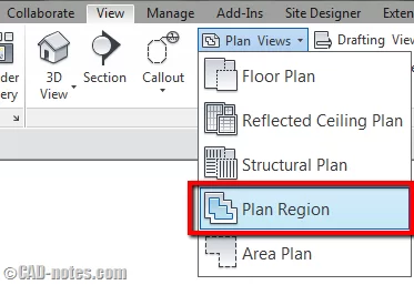 با استفاده از Plan Region می توانید این کار را انجام دهید. می توانید این ابزار را در View tab> Create panel> Plan Views drop-down> Plan Region دردسترس است.