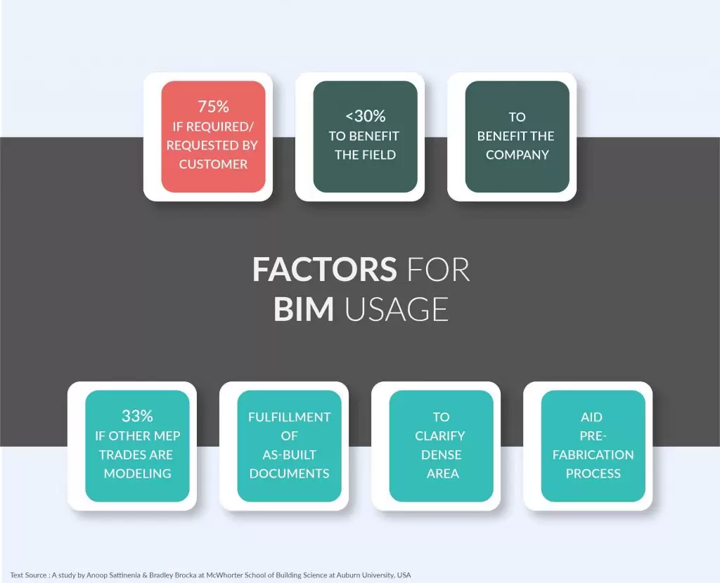دلایل اصلی استفاده پیمانکار جزء از BIM. رایج ترین دلیل این است که: “قرارداد به آن اقتضا می کند.”