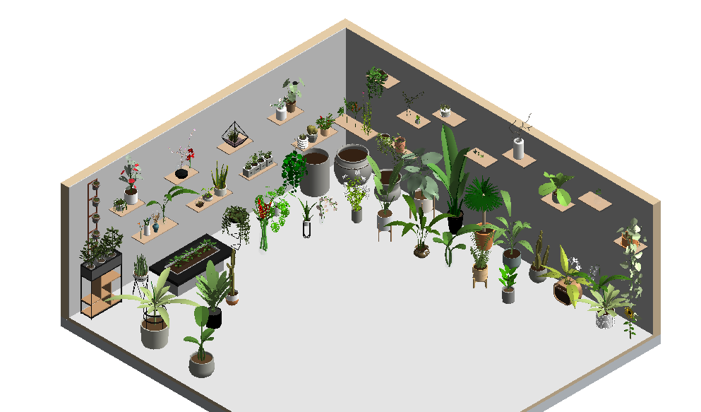 شامل بیش از ۸۰ فمیلی انواع گلدانها، گیاهان تزئینی، فلاورپاتها و دیوار سبز داخلی.