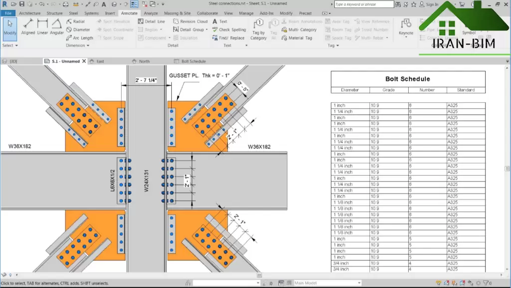 یکی از ویژگی های بسیار کاربردی در نرم افزار Revit 2019، زبانه Steel می باشد که شامل ابزارهایی مانند plates, bolts, Welds, cope, miter, contour and